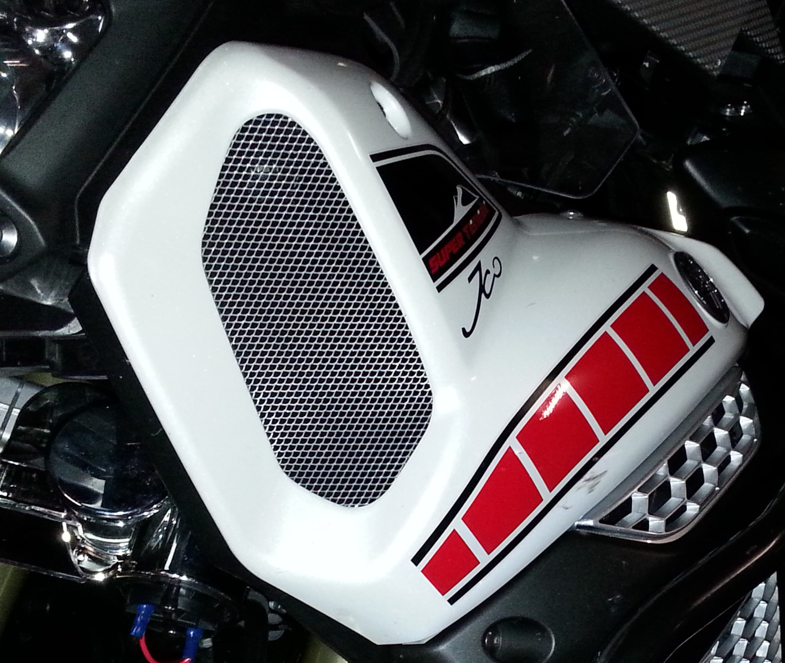 Schutzgitter Lufteinlässe Drahtgitter in die Seitenverkleidungen eingebaut. Arbeitsschritte: Form zuschneiden der Verkleidung anpassen silbern Spritzen mit Klarlack überziehen mit Montagekleber von innen befestigen Zurück Weiter