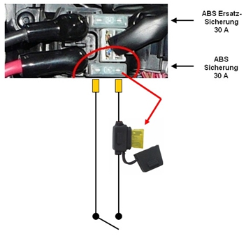 - In das Kabel einen Sicherungshalter einbauen und die ABS Sicherung wieder einsetzen.